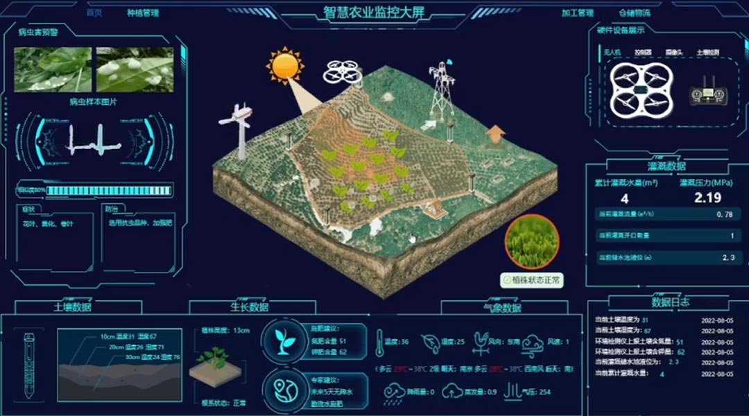 利用物联网、人工智能、大数据等现代信息技术与农业进行深度融合,实现农业生产全过程的信息感知、精准管理和智能控制的一种全新的农业生产方式,可实现农业可视化诊断、远程控制以及灾害预警等功能。