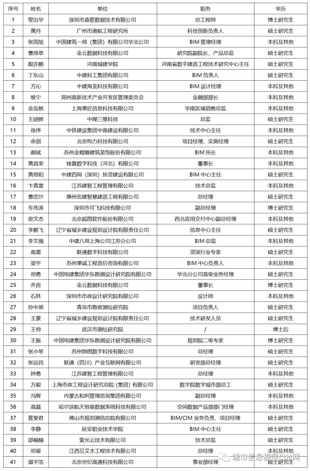 首批公布专家人选,其中,硕士研究生及以上的占比超过60%,高级职称及以上的占比约为50%。此次公布首批专家团体来自全国各地,有着不同的专业和各自擅长的领域,但相同的是,大家对于“城市信息模型CIM”产业发展,都有持续关注,愿意贡献更多的智慧和力量。 CIM网官网布置了专门的“CIM网专家智库”子界面,用于公示智库专家人选、受聘证书及智库动态。